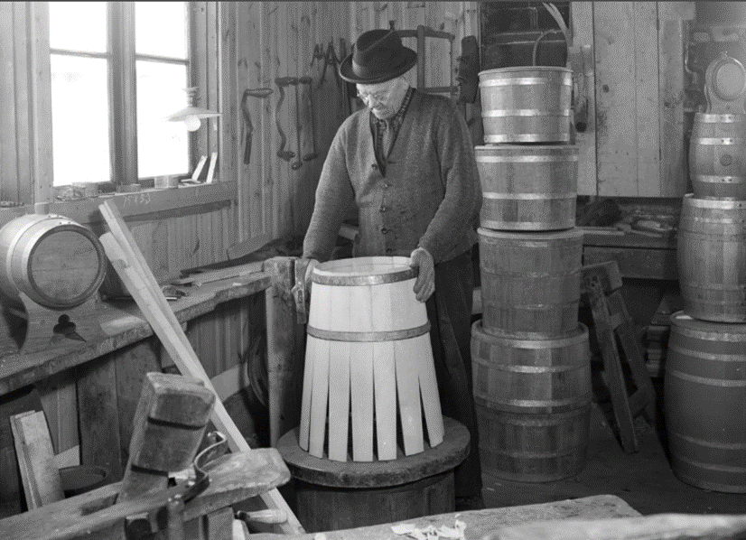 En värmländsk tunnbindare fotograferad 1948 av Dan Gunner. Avfotograferat av Värmlands Museum